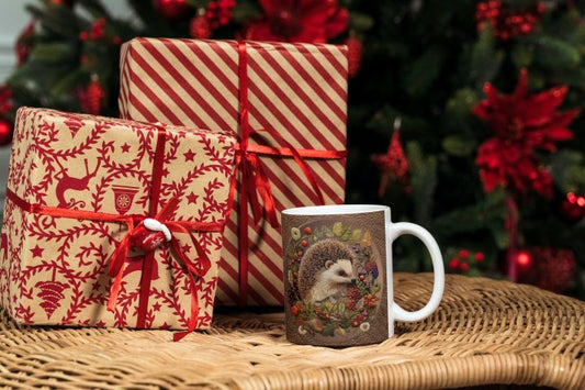 Hedgehog in Autumn Wreath Borderless Print Mug